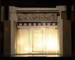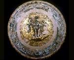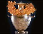 However, the truly impressive findings in Vergina are the large, double-chambered tomb of Philip II with a facade resembling that of a Doric temple, a marble door, triglyphs and metopes, and a splendid painting of a hunting scene on the facade. Found inside the tomb were the pure gold larnax with the ashes of the deceased, a golden wreath, weapons, the gold and ivory shield, the iron cuirass and other objects. One of the wives of Philip II also appears to have been buried in the antechamber. She too was laid to rest in a pure gold larnax, with a golden diadem, most likely one of the most beautiful pieces of jewellery in the ancient world, a golden wreath of myrtle leaves and other fine objects.